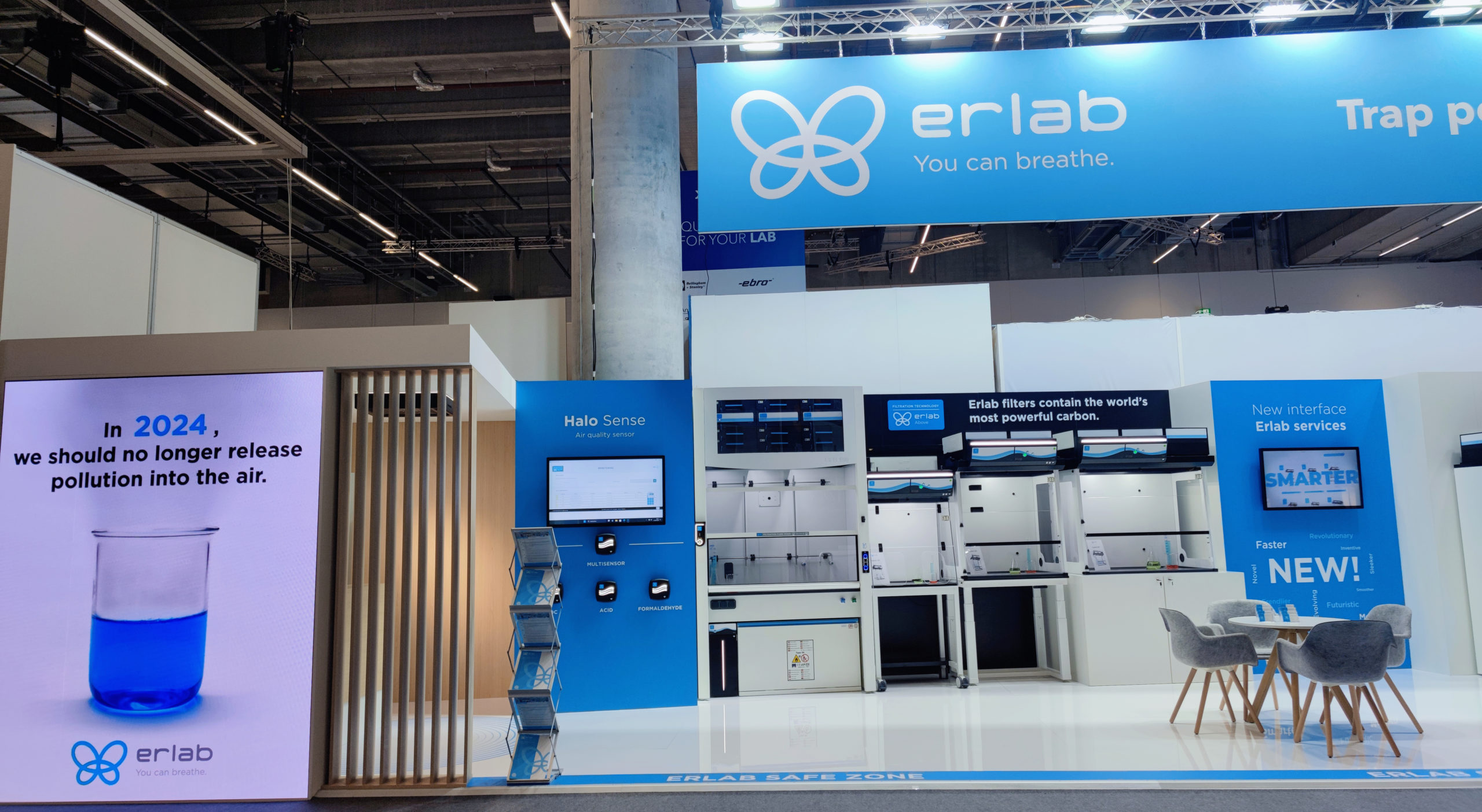 To offer a train of thought on advanced laboratory construction, Erlab show an integrated chemical filtration Ecosystem solution, from safe chemical handling, storage, air purifier to monitoring.