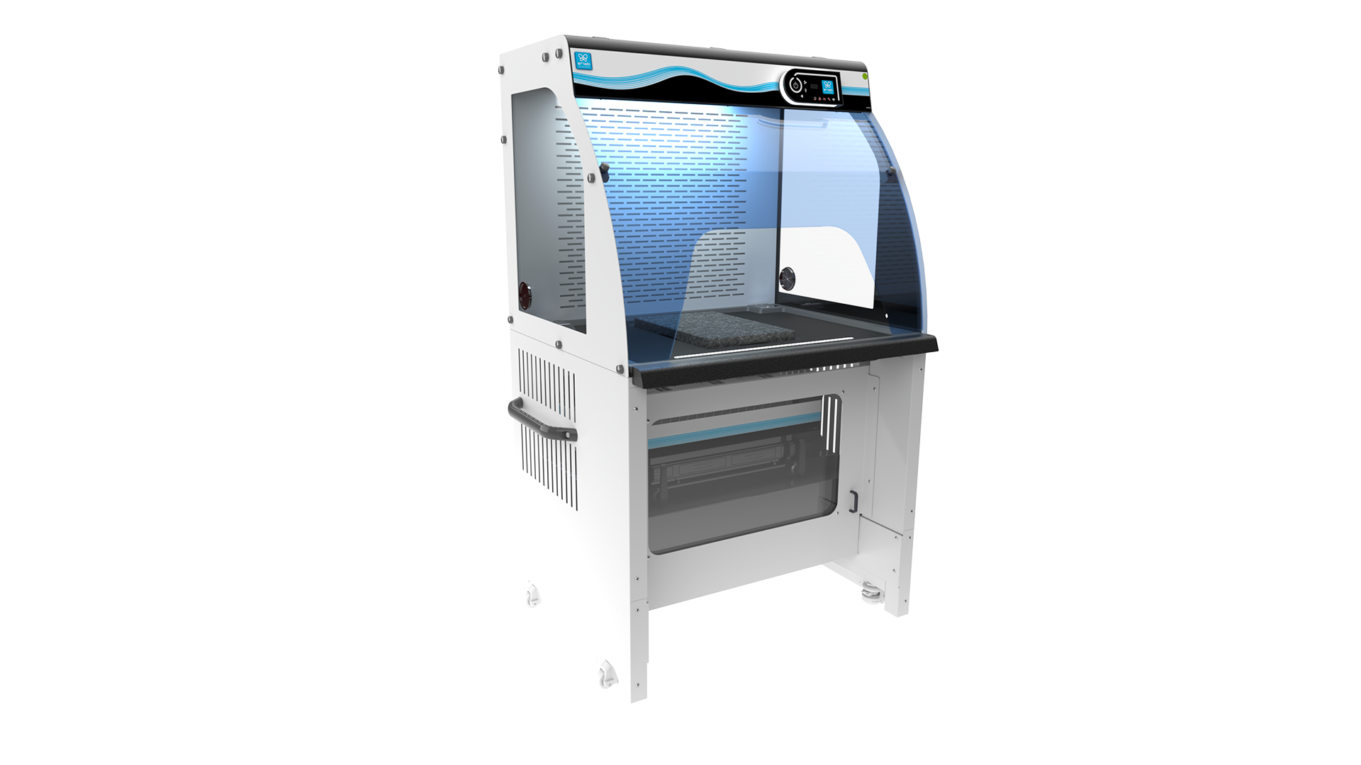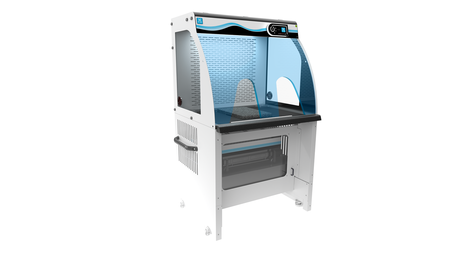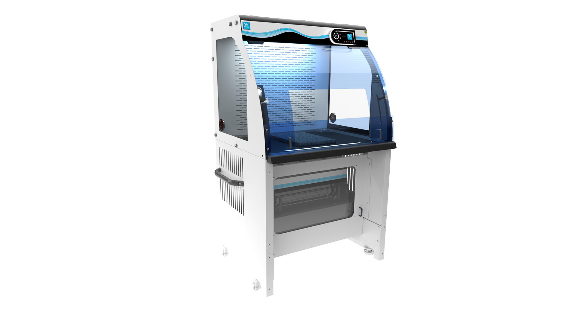 Il Captair 391 Smart è stato progettato per integrarsi facilmente in qualsiasi ambiente di laboratorio, anche i più vincolanti. La sua struttura compatta e le ruote integrate facilitano lo spostamento e l’installazione senza sforzo. Lo spazio sotto il piano di lavoro consente un utilizzo comodo da seduti, mentre il poggiabraccia integrato riduce l’affaticamento durante le manipolazioni prolungate.